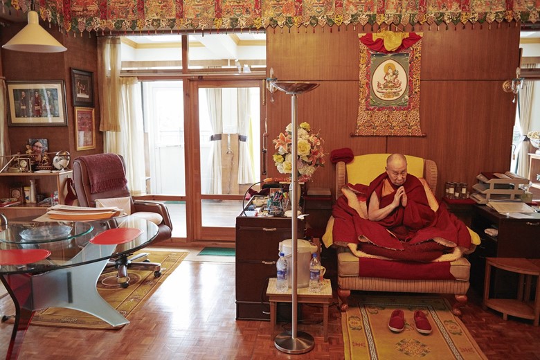 The Dalai Lama meditates in his private chapel inside his residence on Feb. 18, 2019.