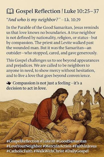 The Parable of the Good Samaritan teaches that “neighbor” means anyone in need, regardless of background, challenging us to show radical compassion, break down social barriers, and act with sacrificial love, even at personal inconvenience, just as the Samaritan helped his enemy, mirroring Jesus’s own mercy and calling us to be active agents of healing in a divided world, not just observers. It moves beyond mere religious duty to demand practical, empathetic action, showing that true worship involves seeing the humanity in others and actively caring for them.