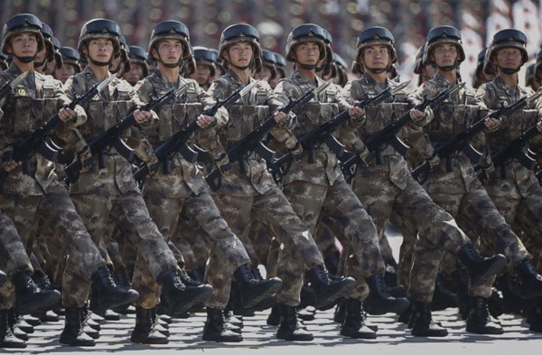 Chinese troops marching to commemorate the 70th Anniversary of the ‘Victory of Chinese People’s Resistance against Japanese Aggression and World Anti-Fascist War’ at Tiananmen Square in Beijing on Sept. 3, 2015. China planned to increase its defense budget in 2016 by 7 to 8 percent (European Pressphoto Agency/Rolex Dela Pena/poll/file)