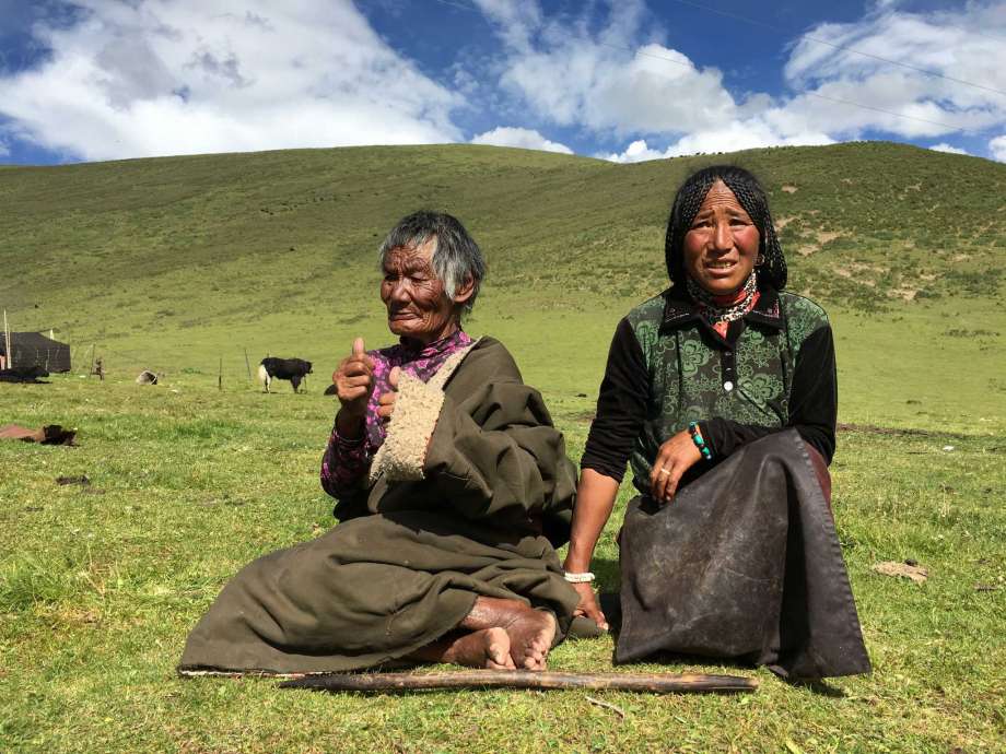 Death and Misery in Occupied Tibet: Tsering Tso’s grandmother, Lhadhey, 83, and mother Adhey, 49, pose for a photograph in Jiqie No. 2 Village on the grasslands outside Chalong township in China’s western Sichuan province. (Xu Yangjingjing/The Washington Post)