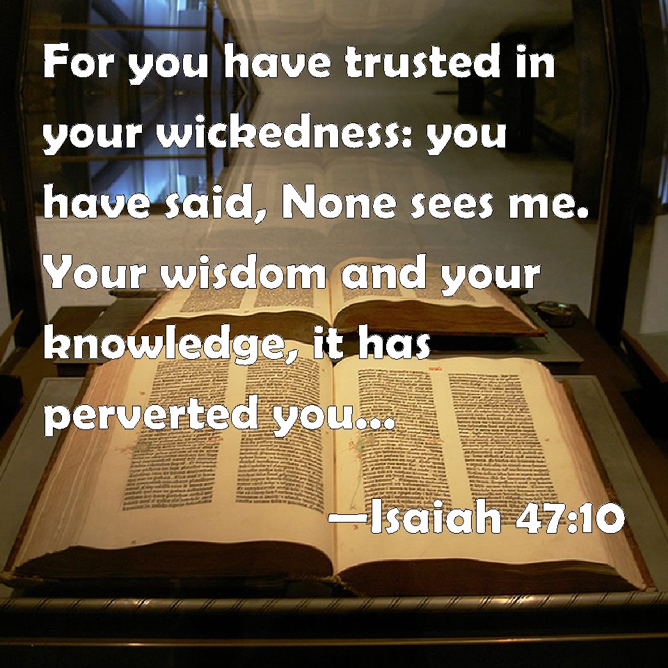 “You have trusted in your wickedness and have said, ‘No one sees me.’ Your wisdom and knowledge mislead you when you say to yourself, ‘I am, and there is none beside me.’