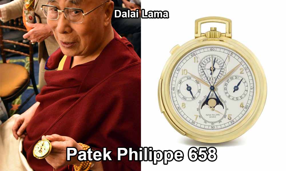 The Patek Philippe was a given to The Dalai Lama as a gift from U.S. President Franklin Roosevelt in 1943. During World War II , the Allied Powers wanted to build a road through Tibet, from India that continued to China. In 1943, two American agents from the Office Of Strategic Services (the US Central Intelligence Agency) delivered a package to the young Dalai Lama from U.S. President Roosevelt, which contained a letter and a complicated yellow-gold Patek Phillipe Reference 658 Pocket-watch model.