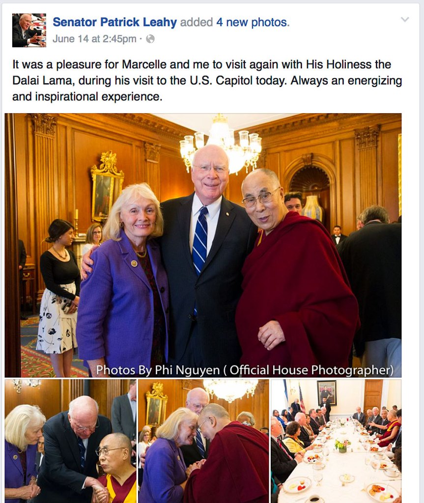 It was U.S. Senator Patrick Leahy who shared this magnificent Patek Philippe watch to the world. Senator Patrick Leahy is pictured below with His Holiness, The Dalai Lama in Washington DC, along with Mrs. Leahy.