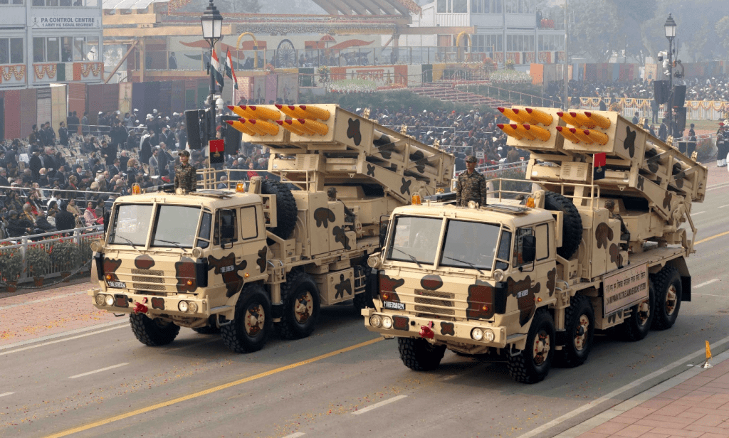 Whole Dude – Whole Parade: Indian Army multi-rocket launcher vehicles drive through the ceremonial Kartavya Path boulevard, previously known as Rajpath, during India’s Republic Day parade celebrations in New Delhi.