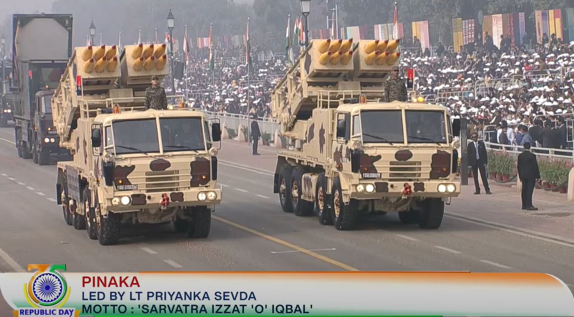 Whole Dude – Whole Parade: PINAKA of the Regiment of Artillery from 1890 Rocket Regiment, led by Lt Priyanka Sevda of 262 Field Regiment.