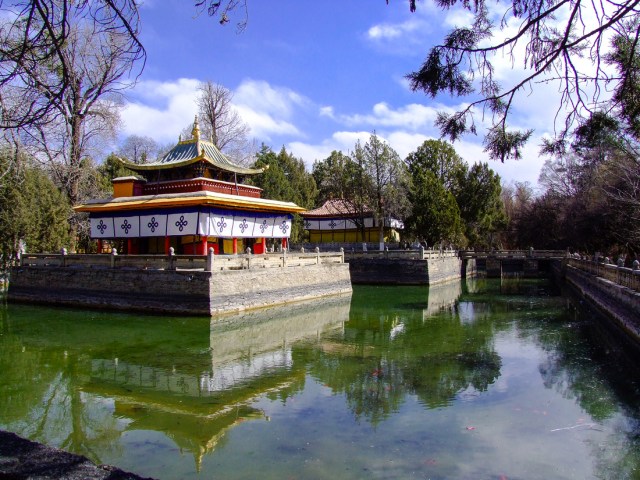 Norbulingka, literally the “Jeweled Garden,” is a palace and its surrounding parks located in a western suburb of Lhasa. It was constructed in the 1740s as a summer palace for the Dalai Lama and later served the whole governmental administration. The place boasts typical Tibetan palace architecture, as well as gentle streams, dense and lush forestry, birds and animals. Covering an area of around 36 hectares, it is considered to be the largest man-made garden in Tibet. Being part of the “Historic Ensemble of the Potala Palace,” Norbulingka is recognized as a UNESCO World Heritage Site, and was added as an extension to this Historic Ensemble in 2001.[China.org.cn]