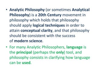 We need a methodology to study philosophy and to understand philosophical statements. Logical Positivism, also known as Scientific Empiricism aims to clarify concepts in both everyday and scientific language. It describes analysis of language as the function of philosophy. This analysis of language and of concepts is important to understand questions of belief and ideology which affect what we think we ought to do individually and socially.