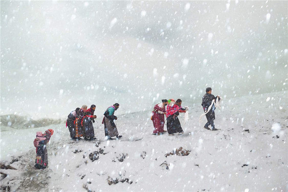 Followers in the snow [Photo by Hu Guoqing/cpanet.org.cn]