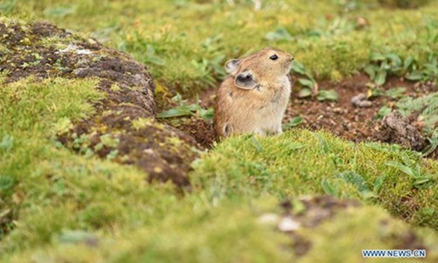 A plateau pika (Ochotona curzoniae) is pictured by a lakeside on the Qinghai-Tibet plateau in Maizhokunggar County, Tibet. July 6, 2019. (Photo: Xinhua)