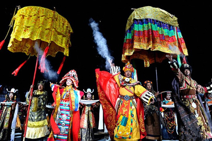 World stage: a performance of Princess Wencheng entertains guests at the Forum on the Development of Tibet Credit: Wang Jing / China Daily