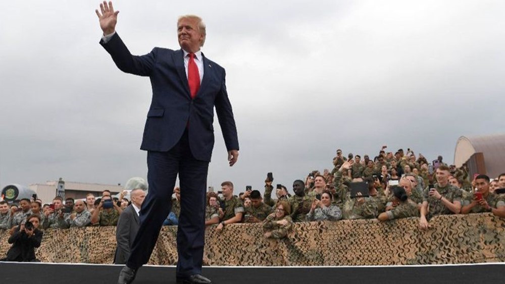 Treating the speech to troops much like a campaign rally, Trump bashed Democrats, cursed and used a familiar and suspicious trope — claiming that some unidentified people had been deeply moved by his presence.