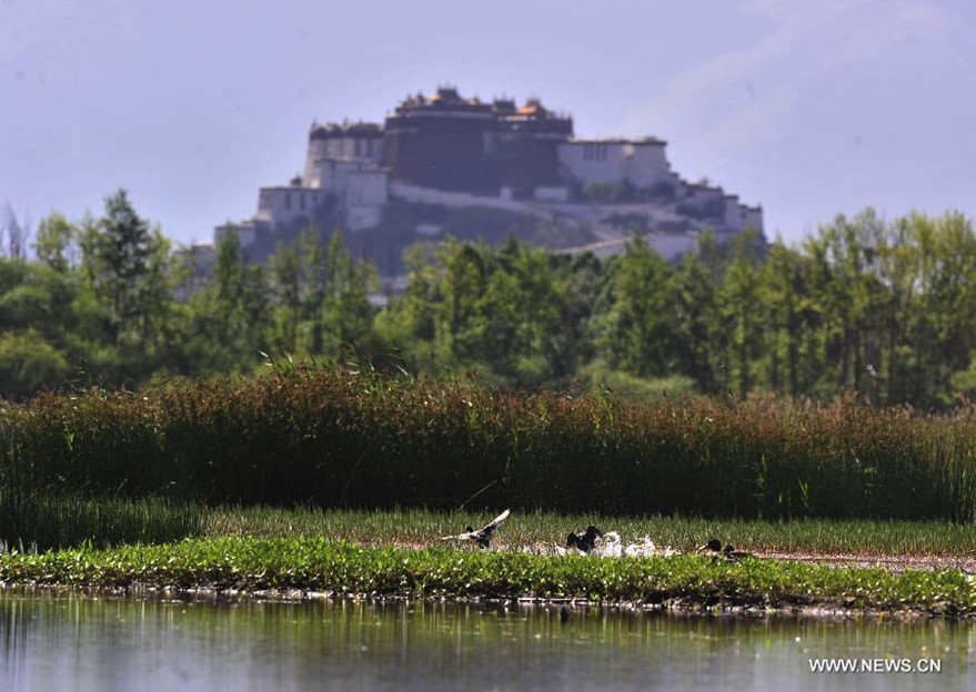 Photo taken on June 27, 2019 shows the view of the Lhalu wetland in Lhasa. Lhalu wetland national nature reserve is known as “the Lung of Lhasa”. (Xinhua/Zhang Rufeng)
