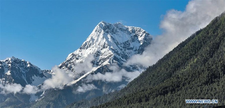 Photo taken on June 1, 2019 shows the snow mountain in Bomi County, Nyingchi of southeast Tibet. Bomi County is known for its snow mountain and glaciers. (Xinhua/Jigme Dorje)