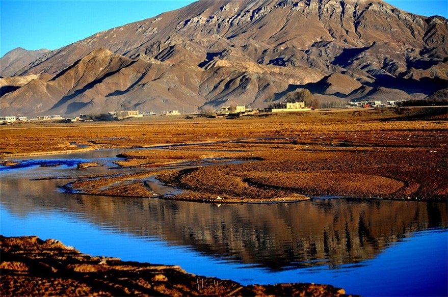 Wetland scenery near Mount Chomolhari in Shigatse, Tsang Province, Tibet