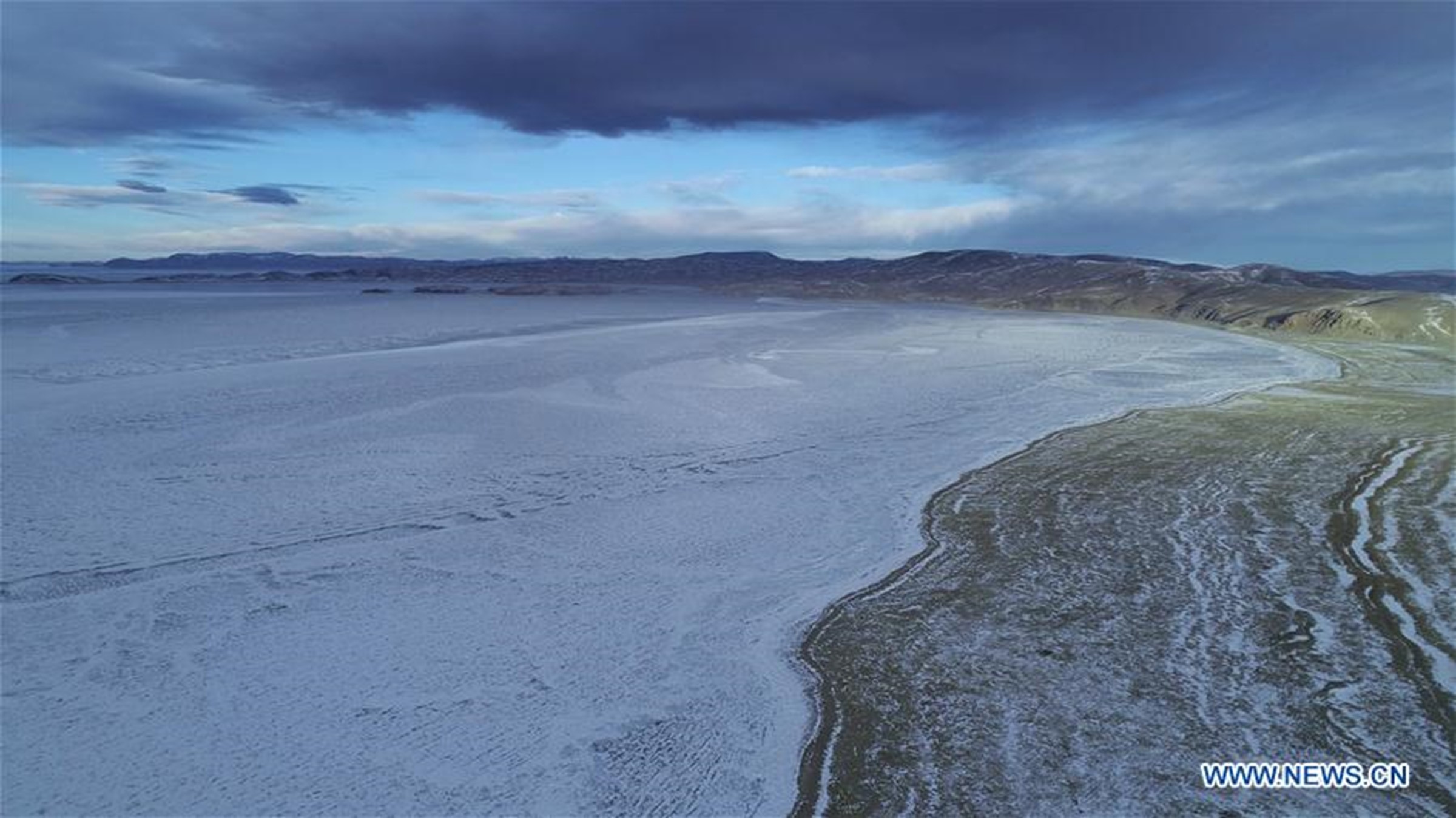 Photo taken on Jan. 18, 2019 shows the frozen Namtso Lake in Tibet. In the past, herdsmen in Tibet endured a ridiculously long, cold winter from October to the end of June, before moving to the summer meadow. They had no fixed residence and migrated when the seasons changed, taking their tents, kitchen utensils, and other necessities on horseback. Nowadays, most herdsmen benefit from local resettlement program. (Xinhua/Purbu Zhaxi)
