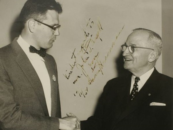 Whole Dude-Whole Representative: Representative John Dingell with the Speaker of the House Sam Rayburn taking his oath to the officein 1955.