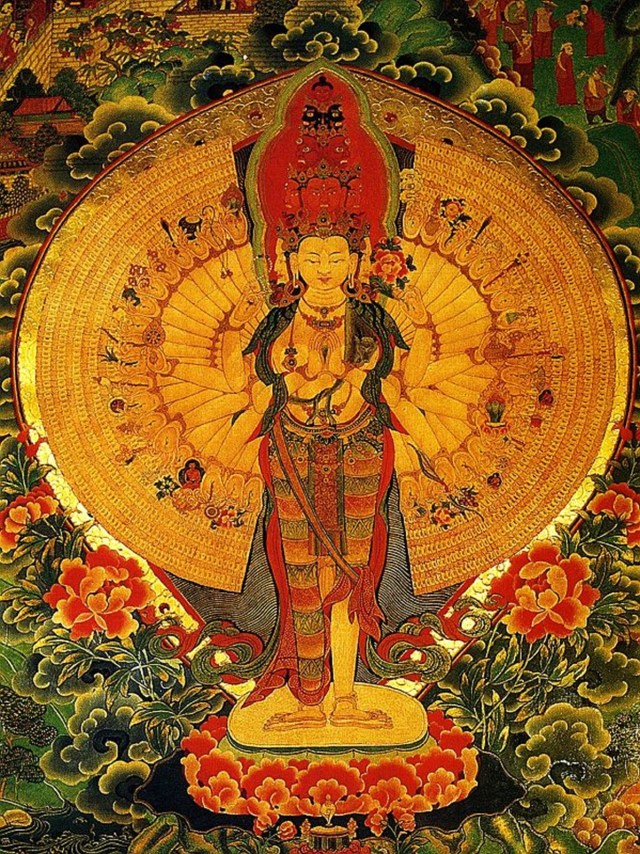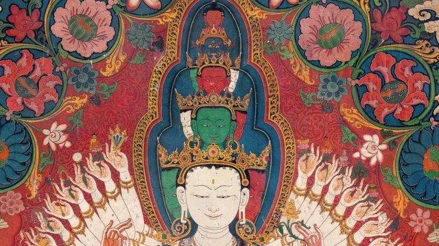 Take, for example, “The Eleven Headed Avalokiteshvara,” the Bodhisattva of Infinite Compassion, with more than 40 hands and multiple levels of faces.