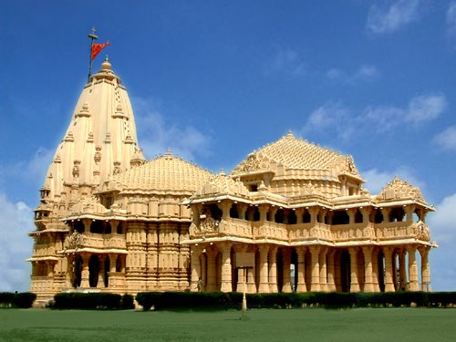 Jyotirlinga Temple at Somnath is mentioned in Hindu prayers in praise and worship of Lord Shiva:”Sauraashtra dese visadeti ramye, Jyotirmayam Chandra Kalaa vatamsam, Bhakti pradaanaaya Krupaa vateernam, Tam Somanaatham Saranam prapadye.”
