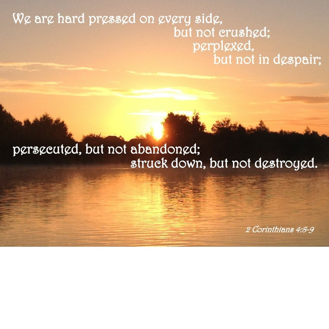 I acknowledge the problems of extreme hardship confronting me from various directions and yet they cannot totally crush my Spirit. I am perplexed but not destroyed.