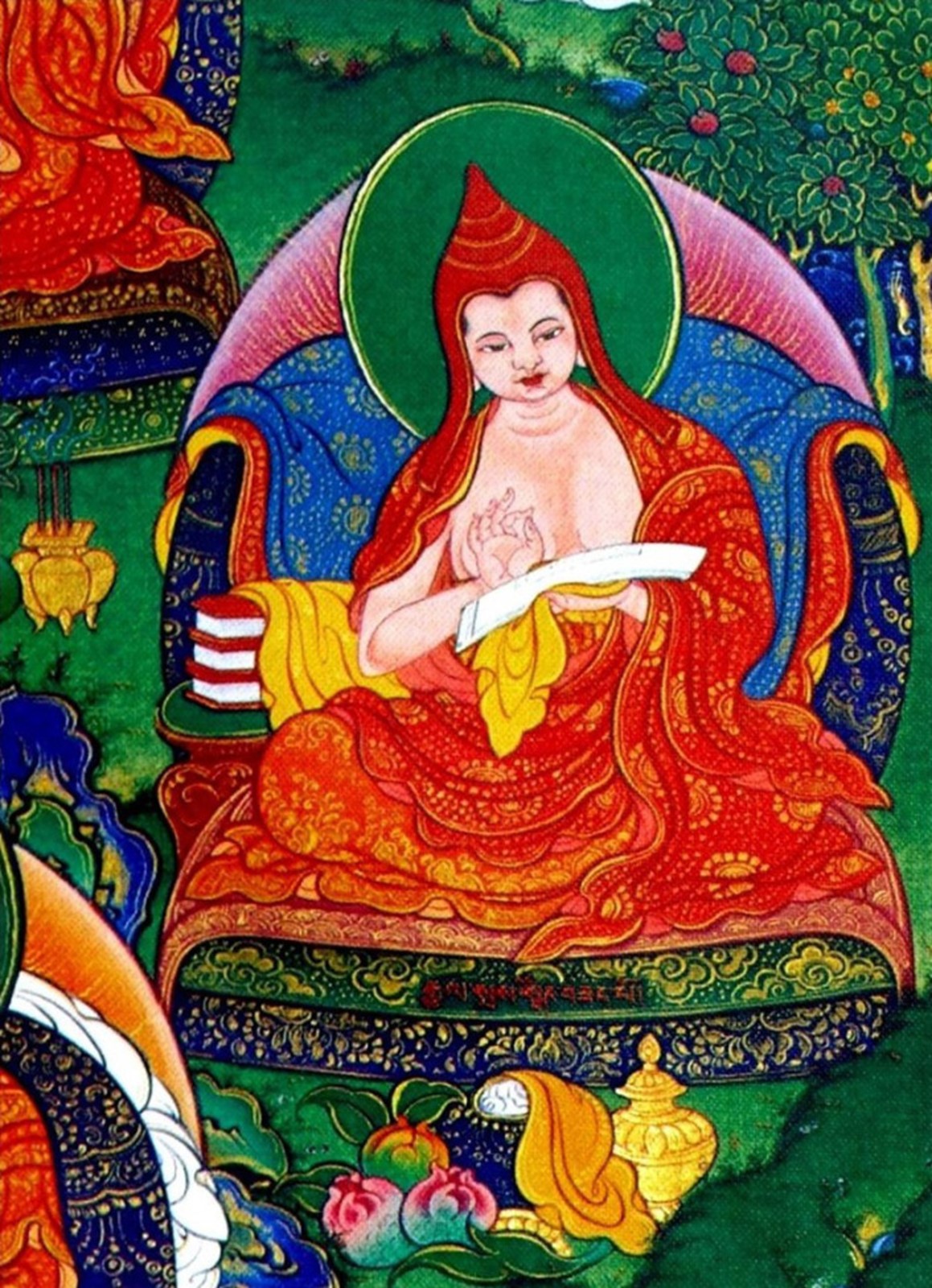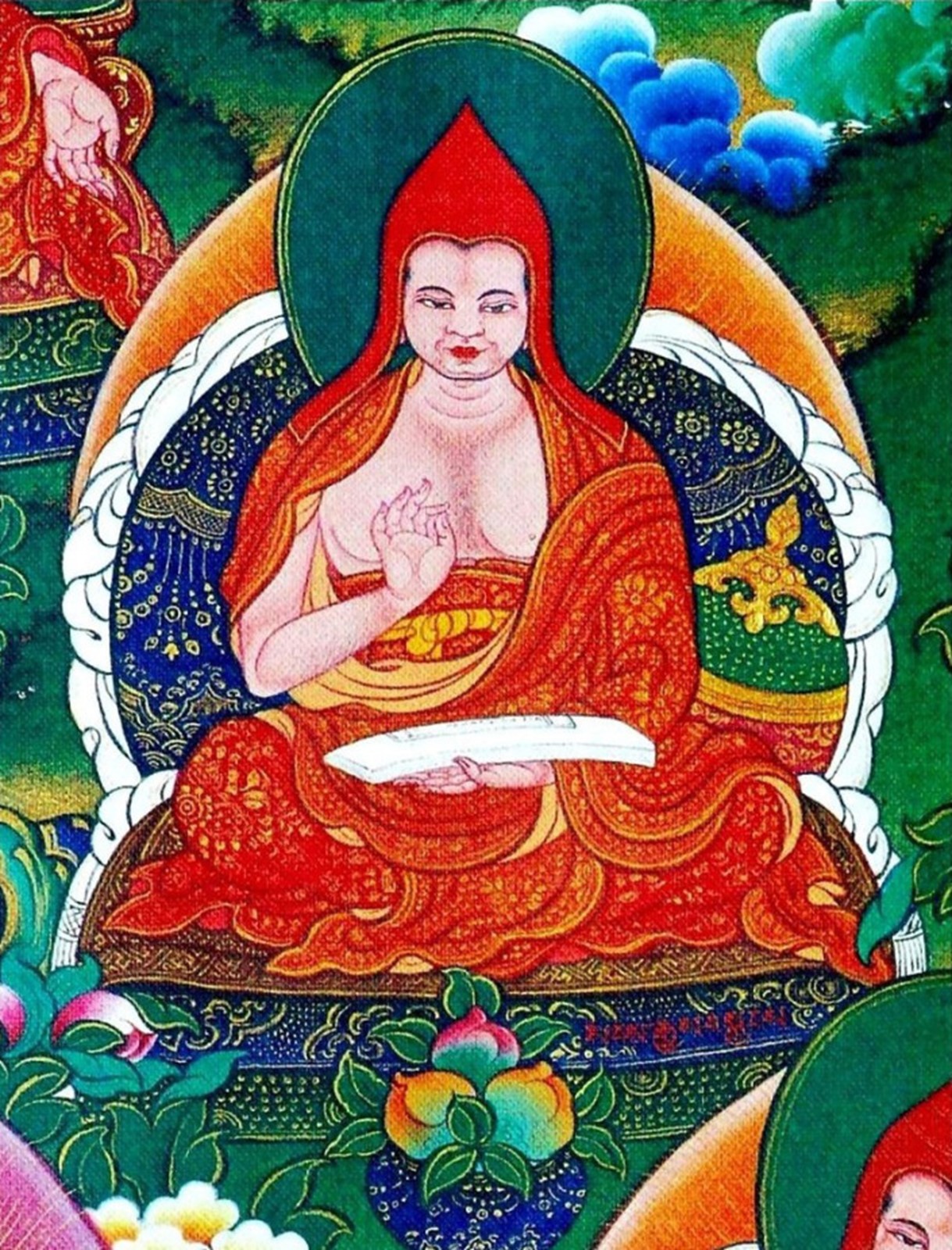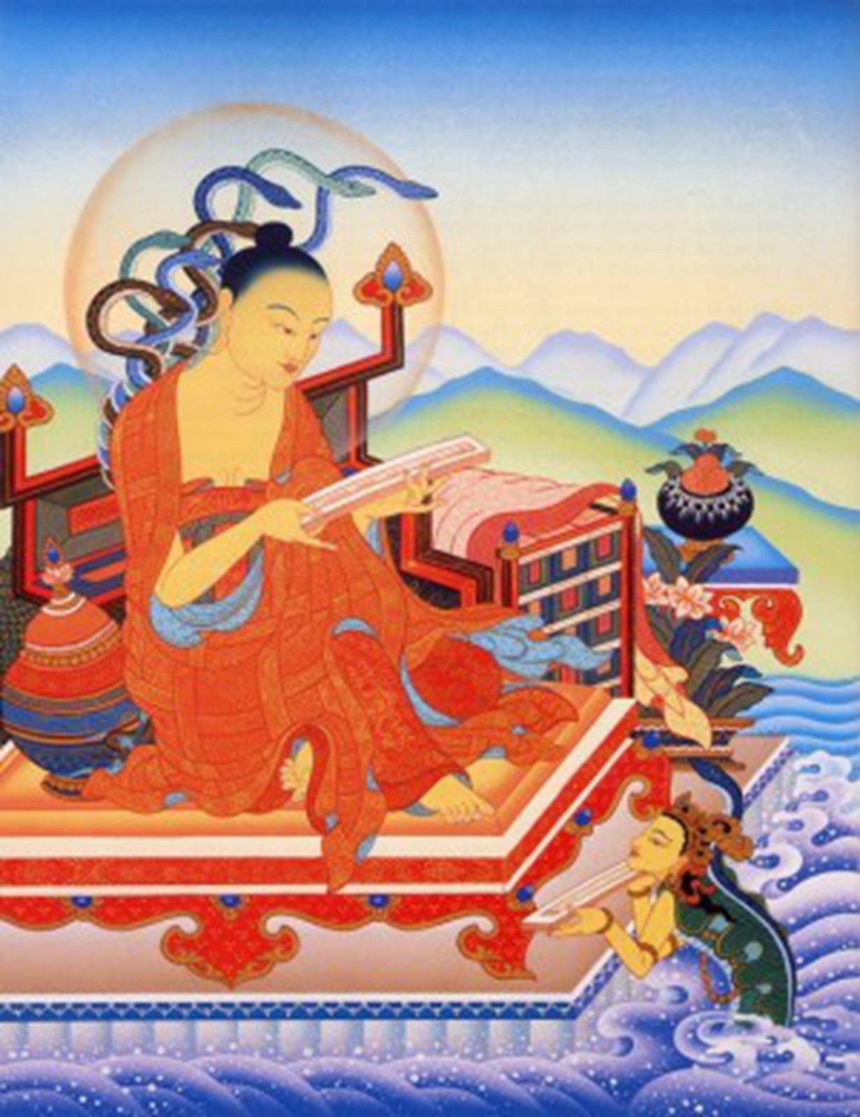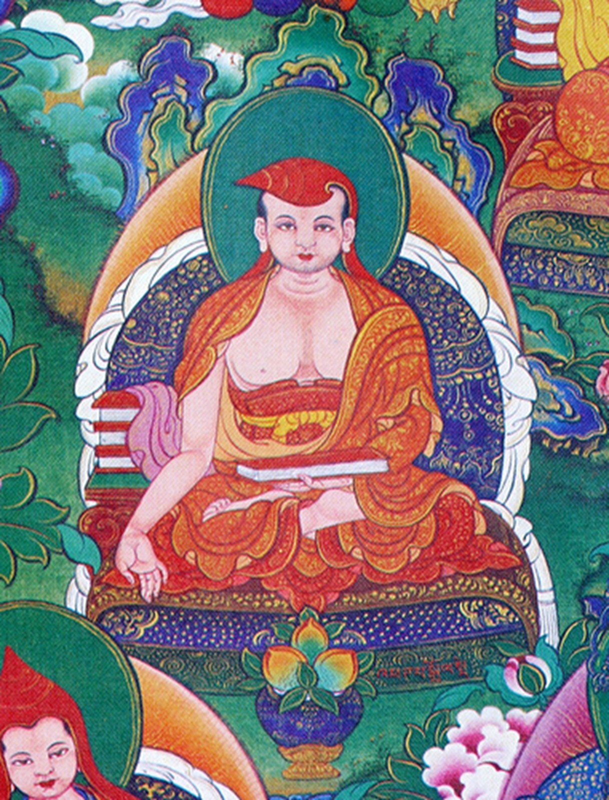 The Two Excellent Ones refers to the two great Vinaya masters: Gunaprabha (c. 9th century C.E.) andShakyaprabha. Gunaprabha was a disciple of Vasubandhu’s and is most famous for his treatise, the Vinaya Sutra. Shakyaprabha was a disciple of Shantarakshita (also among the seventeen) and the other major teacher of vinaya among the seventeen. He is particularly associated Mulasarvastivada-vinaya line which has been followed in Tibet since the time of the early Dharma King, Ralpachen (born c. 806 C.E.). His teacher Shantarakshita began this ordination lineage in Tibet when he ordained the first seven Tibetan monks and founded Samye Monastery.
