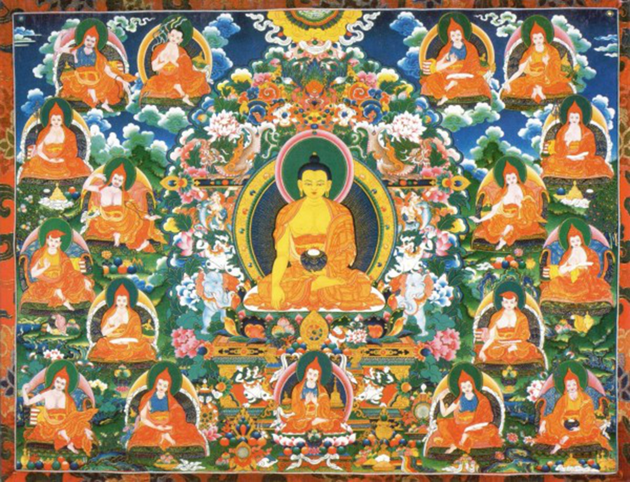So who were they? Historically speaking, this particular grouping of Indian masters seems to have become prominent quite recently and to be based on attributions of lam-rim (stages of the path) lineages in Tibet. A likely predecessor to this grouping is an Indian reference to the Six Ornaments of the Southern Continent (i.e., India) and the Two Excellent Ones. These eight form the core of the seventeen.
