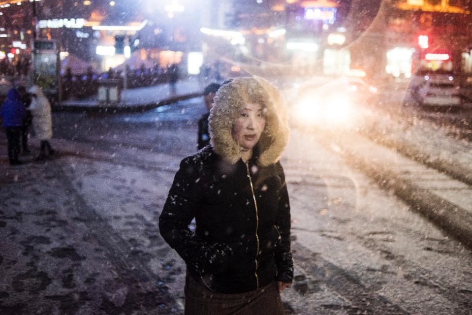 A woman walks in the snow in Kangding in the Ganzi Tibetan Autonomous Prefecture, southwestern China.