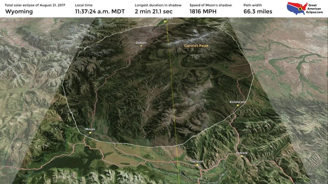 Tour the entire path of totality from Oregon to South Carolina. Built with advanced GIS software and data and utilizing precise figures of the Moon’s shadow by NASA’s Scientific Visualization Studio, this animation shows you all the great spots to view the total solar eclipse.