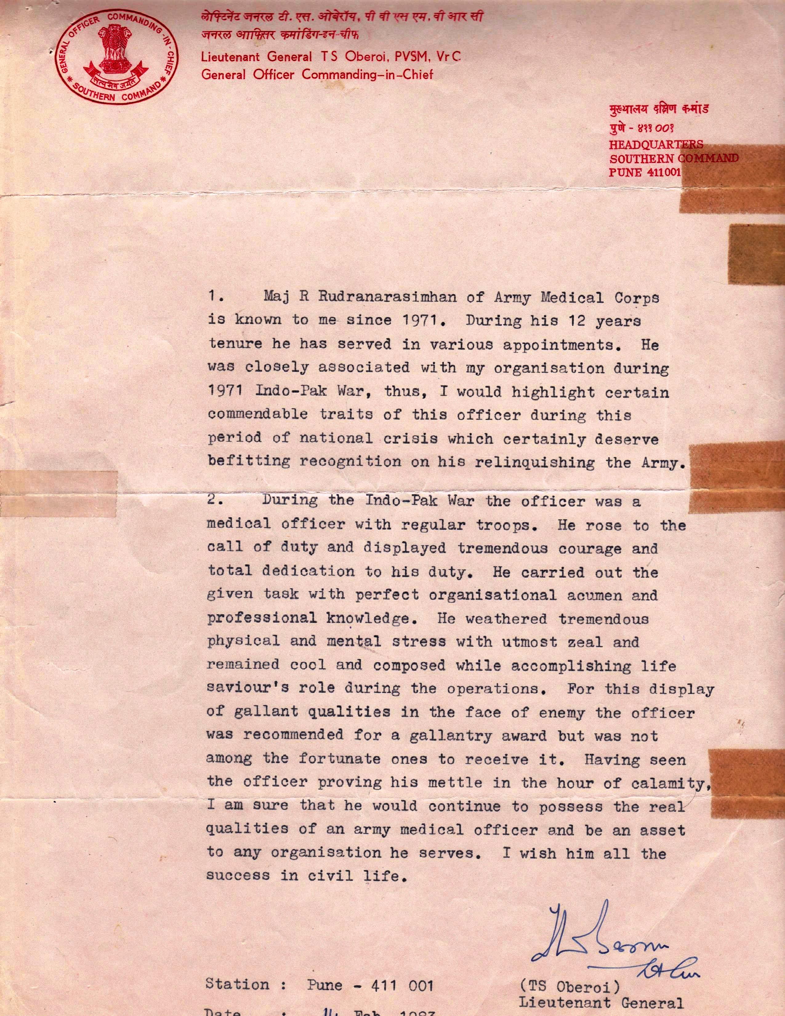 The Medical Plan for the Fifth Army in Bangladesh – A Chakma tribal person is my eye witness during unplanned battlefield medical evacuation of casualties in the Chittagong Hill Tracts. OPERATION EAGLE 1971 – GALLANTRY AWARD – RECOGNITION BY LIEUTENANT GENERAL T S OBEROI, PVSM, VrC, GOC-in-C, Hq Southern Command