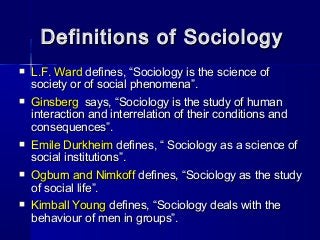Comte applies the scientific method to social problems, and his Sociology could be described as the Science of Society. Sociology lays claim to the whole of human life beyond the biological level because virtually all human activities possess a social aspect. Comte believes that the scientific study of social organization would make possible a reconstitution of the social order based on principles of moral progress. Sociologists while studying human social relations or group life have developed a number of concepts in their analysis of the social aspects of human activity.