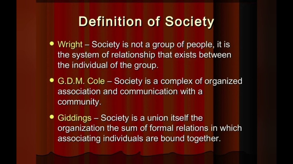 The term ‘Society’ is used to refer to all the social relations and groups formed by human beings; as a singular Unit it refers to members of a particular population occupying a particular territory. ‘Social Interactions’, or the mutual responses of two or more individuals is the elementary component of all the relationships and groups constituting human society. Human interaction both creates and is governed by Social Norms or rules or imagined models of conduct present in people’s mind that guide and control their interactions. Social Norms lead to the development of ‘Social Expectations’ to which people feel an obligation to conform when they are called ‘Social Roles’, the clusters of Norms and Expectations that apply to different classes of persons. Examples of Social Roles include those of father, mother, son, daughter, brother, sister, old man, warrior, and teacher. A ‘Social Group’ is a plurality of individuals in recurring interaction, their interactions controlled by common ‘Social Norms’, and differentiated ‘Social Roles’. The members of a group are at least partially aware of their membership and perceive the ‘Group’ as a coherent, fairly permanent entity. Any recurring pattern of interaction among individuals playing different roles leads to the constitution of a ‘Social Structure’, or ‘Social Organization’. The branch of Sociology called ‘Social Psychology’ studies ‘Social Structures’ of interlinked ‘Social Roles’ and ‘Social Groups’ and the impact of Norms, Roles, and Groups on the individual personality. Social Psychologists study as to how individual personality is shaped through the experience of socialization, or the formation of character and outlook under the influence of the Family, the School, the Peer Group, and other Socializing Agencies.
