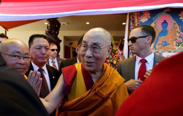 The Dalai Lama greets members of the Vietnamese American community during the opening of Chua Dieu Ngu Buddhist temple in Westminster, Calif., on Saturday, June 18, 2016.