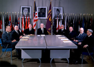 Whole Dude – Whole Champion: May 01, 1964. Presidential candidate, New York State Governor, Nelson A. Rockefeller gets Intelligence briefing. Left to Right:John McCone, DIC; Governor Nelson A. Rockefeller; Robert S. McNamara, Defense Secretary; Dean Rusk, Secretary of State. Photo credit: Francis Miller/Time & Life.