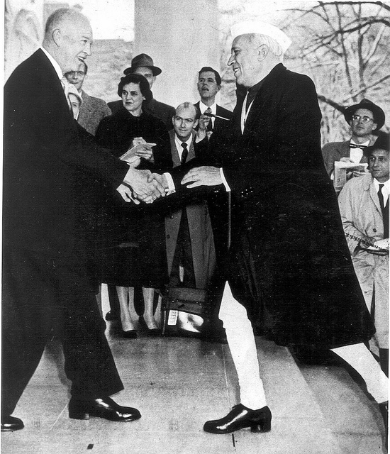 Whole Dude – Whole Champion: In this photo taken during 1958, John A. McCone, Chairman of the World Affairs Council is seen with General Lauris Norstad, Supreme Commander of the Allied Powers in Europe.