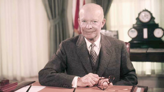 Although Eisenhower embraced religion, biographers insist he never intended to force his beliefs on anyone. In fact, the chapel-like structure near where he and his wife Mamie are buried on the grounds of his presidential library is called the “Place of Meditation” and is intentionally inter-denominational. At a Flag Day speech in 1954, he elaborated on his feelings about the place of religion in public life when he discussed why he had wanted to include “under God” in the pledge of allegiance: “In this way we are reaffirming the transcendence of religious faith in America’s heritage and future; in this way we shall constantly strengthen those spiritual weapons which forever will be our country’s most powerful resource in peace and war.”