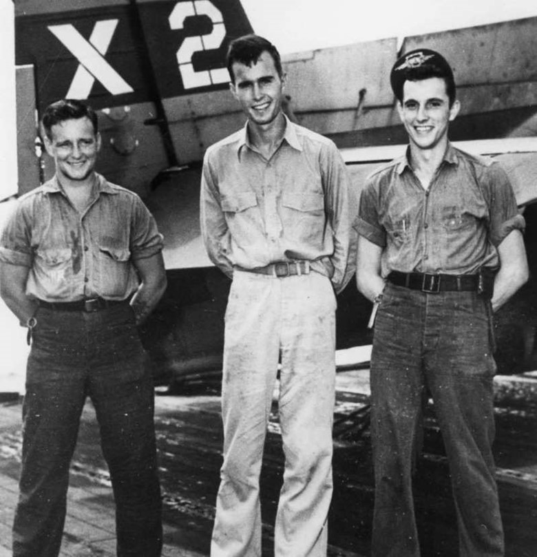 Bush piloted 58 combat missions from the carrier USS San Jacinto, but one stood out. During a Sept. 2, 1944, attack on Japanese positions on Chichi-Jima, one of the Bonin Islands, his Avenger was badly hit by flak. He was able to complete the bombing run but ordered the other two crewmen to “hit the silk” as the plane headed toward the water. He did likewise and was able to haul himself into a life raft after popping up from the sea, dazed and out of breath. His crew mates were never found.