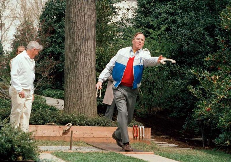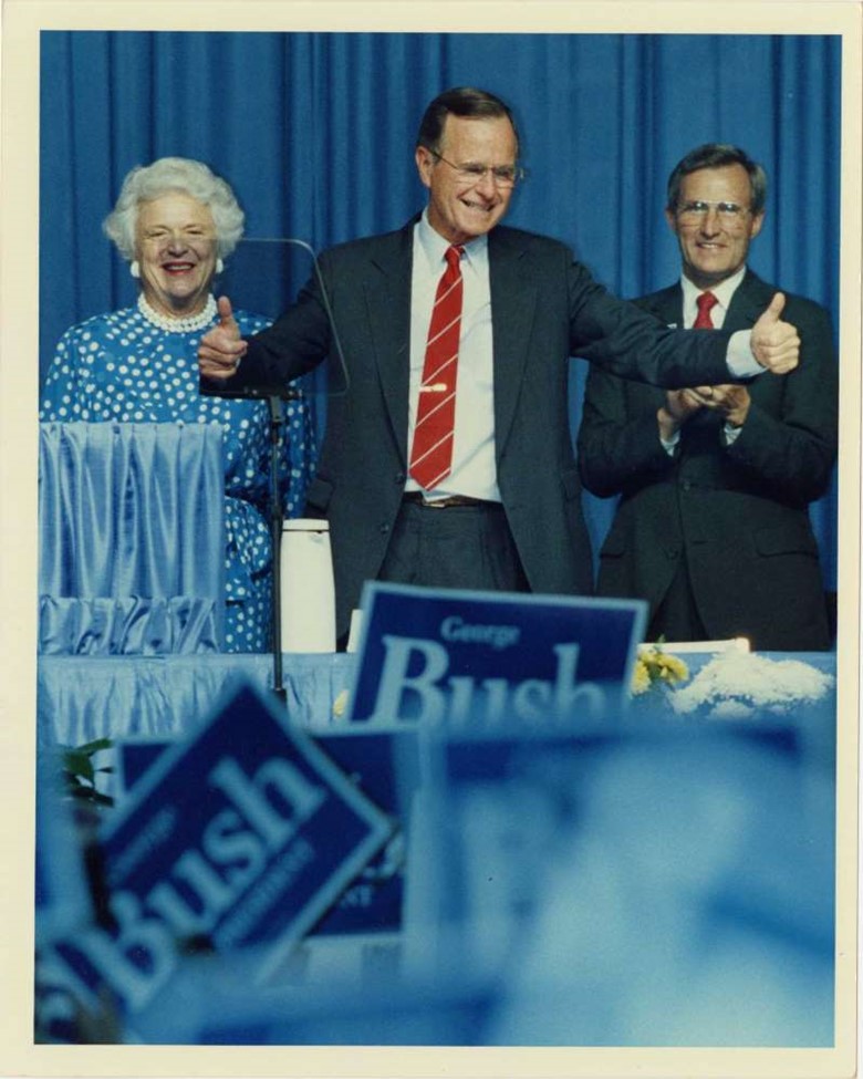 “President Bush was inclined to forgive and forget past slights, defeats, and even outrages,” said longtime aide Chase Untermeyer. “Thus did he offer rides to Maine for Senator George Mitchell, make the daughter of Senator Sam Nunn the head of the Points of Light Foundation, and — to clinch the case — become buddies with Bill Clinton.”