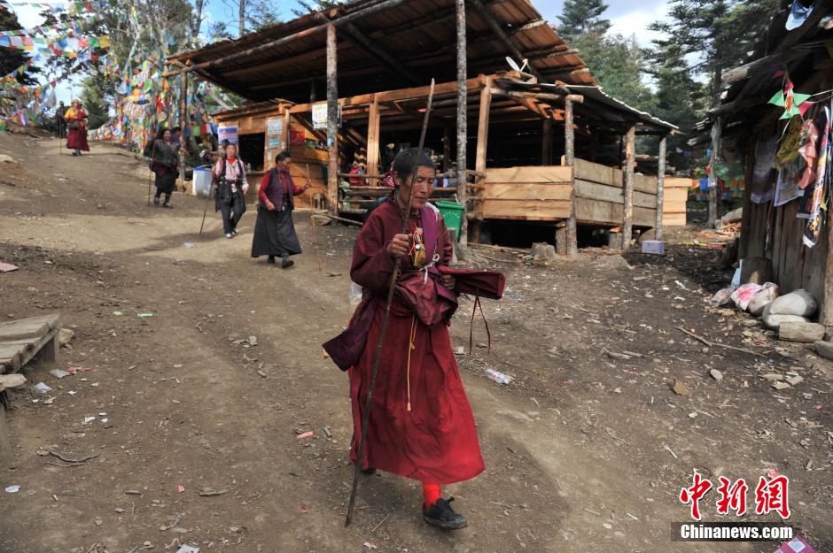 In traditional Tibetan legend, 2015 is Mainri Snow Mountain’s year. In Tibetan’s belief, people may be blessed if they make pilgrimages to holy mountains in the mountain’s year. Therefore, large numbers of Tibetans from Tibet and Qinghai, along with tourists from other parts of China, come to the Mainri Snow Mountain on foot for pilgrimage. (CNS/Ren Dong)