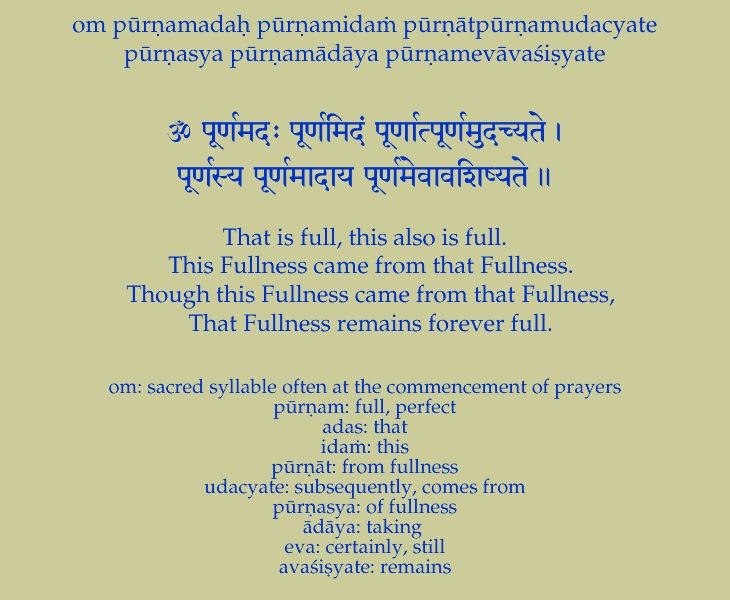 The word Anna is translated as Food and Grains and the word Purna means Whole, Full, or Complete. The Sanskrit words, Anna + Purna or Food + Whole gets transformed into the phrase Whole Foods in English. Fullness comes from Fullness and Fullness remains forever Full. Just like the concept of Sunya or Zero in Mathematics, the concept of Purna or Whole belongs to Bharat, the Land of India.