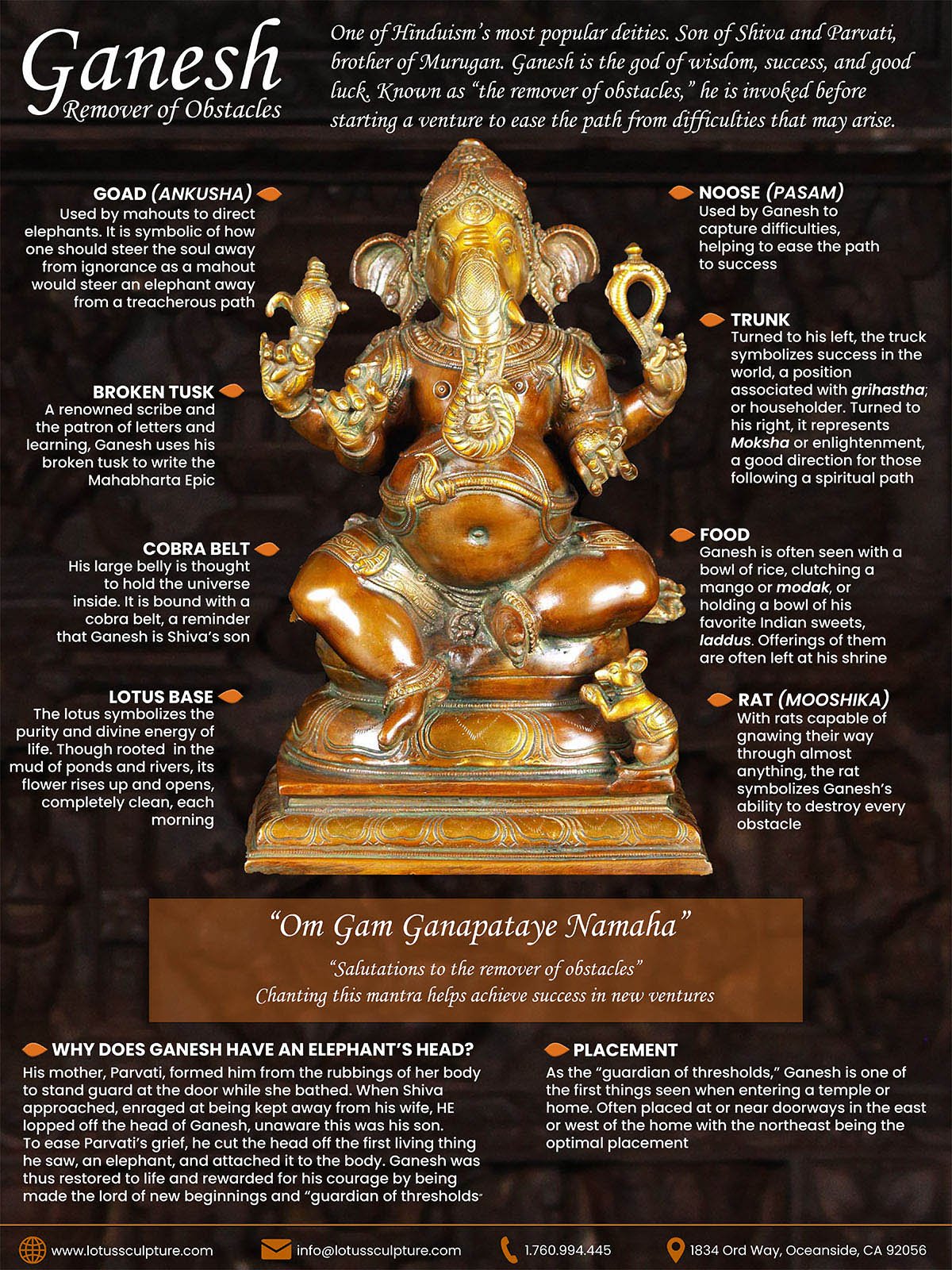 Lord Ganesha is one of the most worshiped deities among Indian Hindus. Also known as Vinayaka or Ganapati, the elephant God is revered as the God of beginnings and the remover of obstacles.