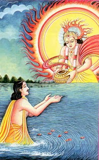 Dharmaraja, the eldest of Pandava Princes receiving “Akshaya Paatra” from Surya Bhagavan