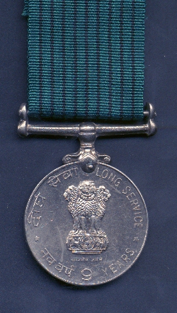 The Government of India awards Sainya Seva Medal to Service Personnel serving in Indian Armed Forces in recognition of ‘non-operational’ services under conditions of special hardship and severe climate. The bar or clasp shows the words ” NEFA ” in Hindi. To qualify for this award, an aggregate of one- year service in the North-East Frontier Agency (NEFA) is required. The Medal shows an image of Nanda Devi Himalayan mountain peak with a bamboo stand in the foreground.