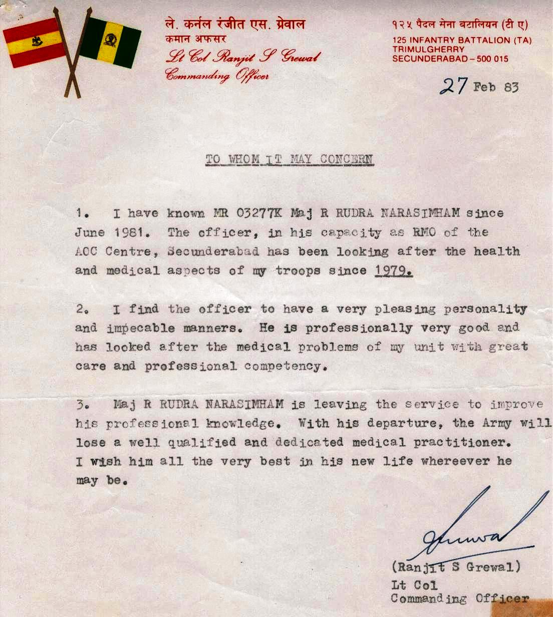 Whole Dude – Whole Flame: My personal interview with Shri.Kamakhya Prasad Singh Deo, Union Minister of State for Defence took place on September 18, 1983 in his office at Ministry of Defence, New Delhi. The Minister’s younger brother was serving as Adjutant at 125 Infantry Battalion (TA) in Secunderabad. This letter was issued to me by Lt Col Ranjit S Grewal, Commanding Officer, 125 Infantry Battalion (TA) on February 27, 1983 several months before my personal interview with the Defence Minister.