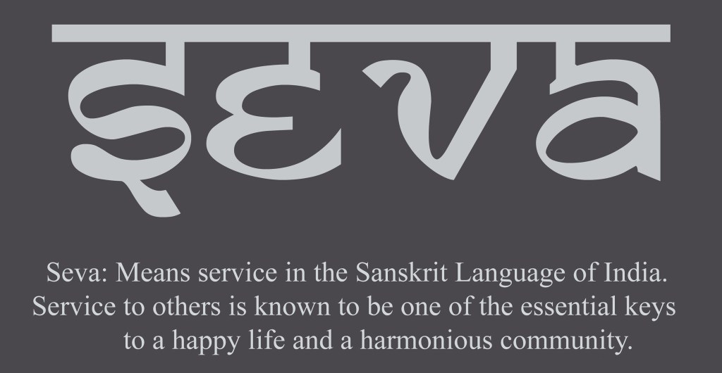 Seva comes from the Sanskrit root sev-, “to serve”, and is a central concept in both contemporary Hinduism and Sikhism. In Hinduism, seva means selfless service and is often associated with karma yoga, disciplined action, and bhakti yoga, disciplined devotion.